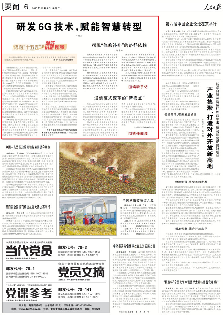 突破既有理论框架,构建语义信息论新体系;打通理论实践壁垒,建成国际首个面向6G智能通信融合外场试验网……北京邮电大学的6G研发团队多年攻关通信科技,让中国6G的研究摆脱了在西方传统理论延长线上“修修补补”的路径依赖。